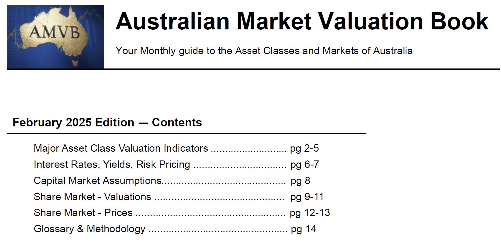 The Australian Market Valuation Book is your chart-driven guide to the asset classes and markets of Australia.